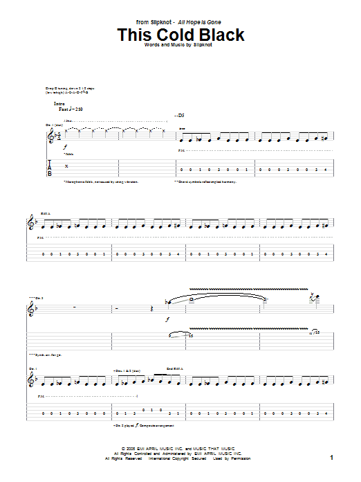 Download or print Slipknot This Cold Black sheet music, chords and digital score arranged for Guitar Tab. This Metal score includes 11 page(s).