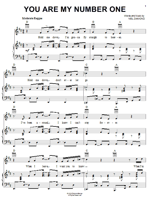 Download or print Smash Mouth You Are My Number One sheet music, chords and digital score arranged for Piano, Vocal & Guitar Chords (Right-Hand Melody). This Pop score includes 5 page(s).