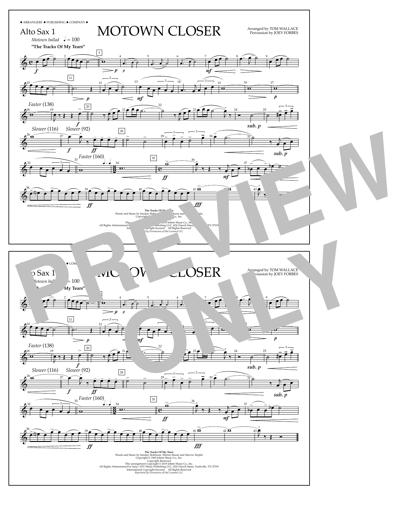 Quick facts Motown Closer (arr. Tom Wallace) - Alto Sax 1 about digital sheet music