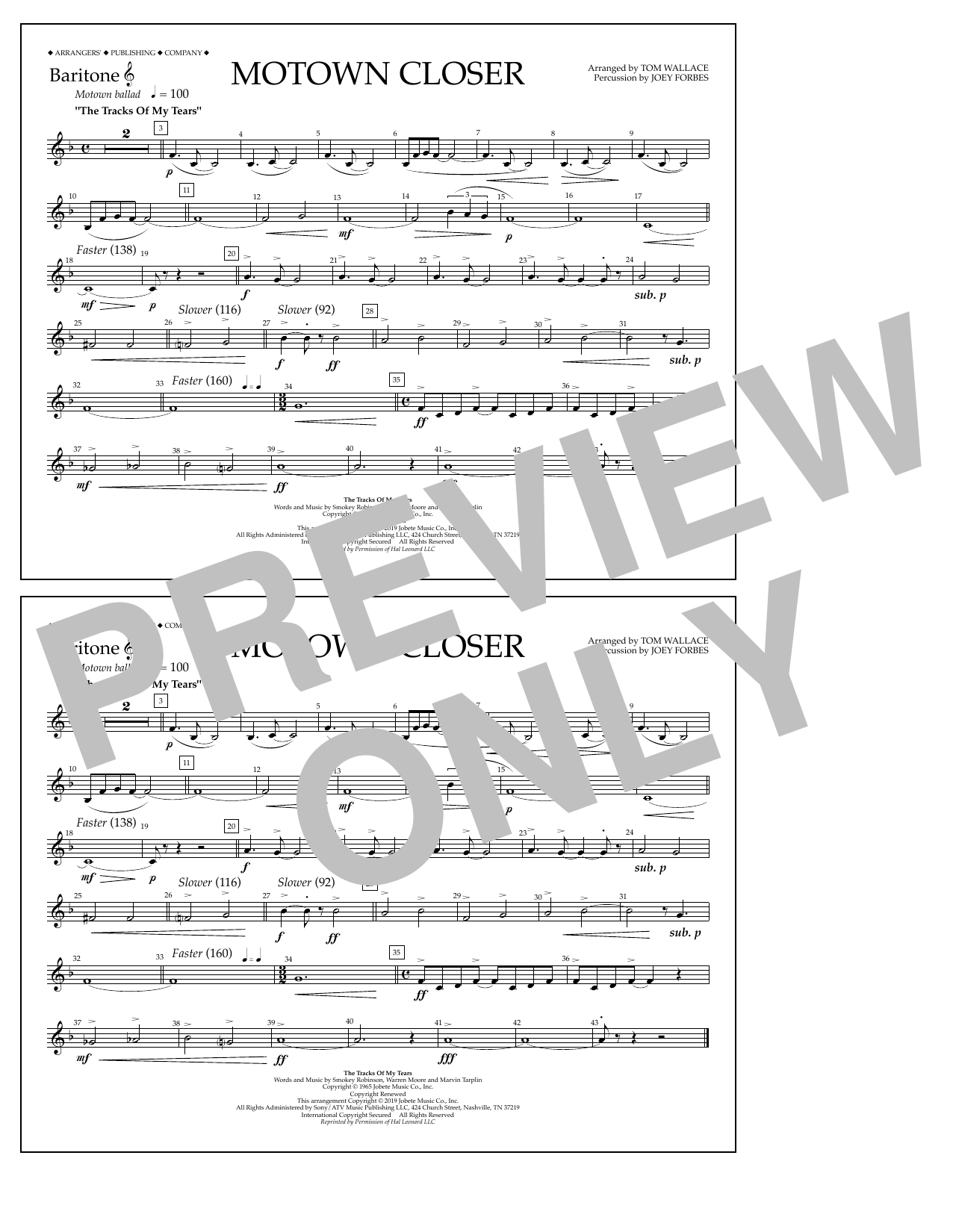 Quick facts Motown Closer (arr. Tom Wallace) - Baritone T.C. about digital sheet music