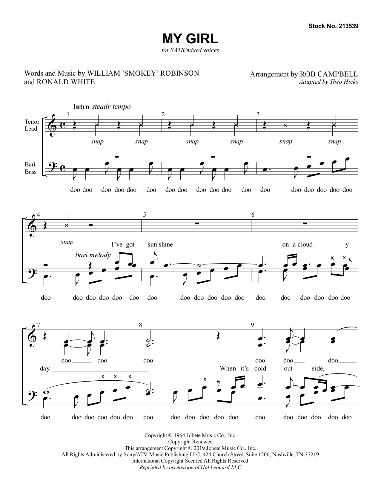 Download or print Smokey Robinson My Girl (arr. Rob Campbell) sheet music, chords and digital score arranged for TTBB Choir. This Pop score includes 8 page(s).