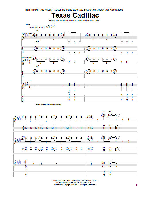 Download or print Smokin' Joe Kubek Texas Cadillac sheet music, chords and digital score arranged for Guitar Tab. This Pop score includes 18 page(s).