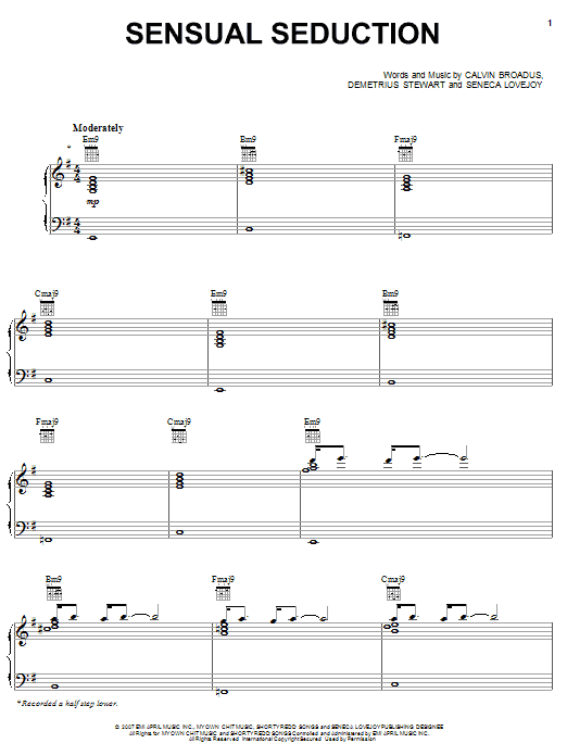 Download or print Snoop Dogg Sensual Seduction sheet music, chords and digital score arranged for Piano, Vocal & Guitar Chords (Right-Hand Melody). This Hip-Hop score includes 8 page(s).