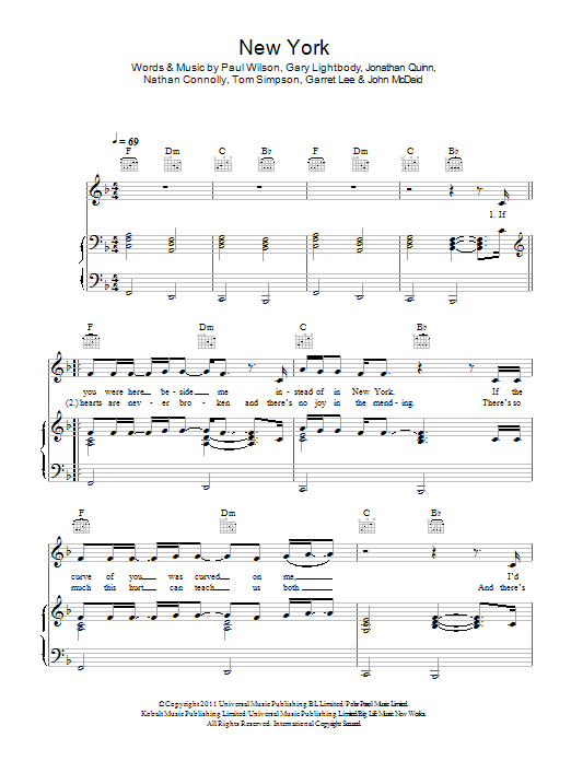 Download or print Snow Patrol New York sheet music, chords and digital score arranged for Piano, Vocal & Guitar Chords. This Pop score includes 5 page(s).