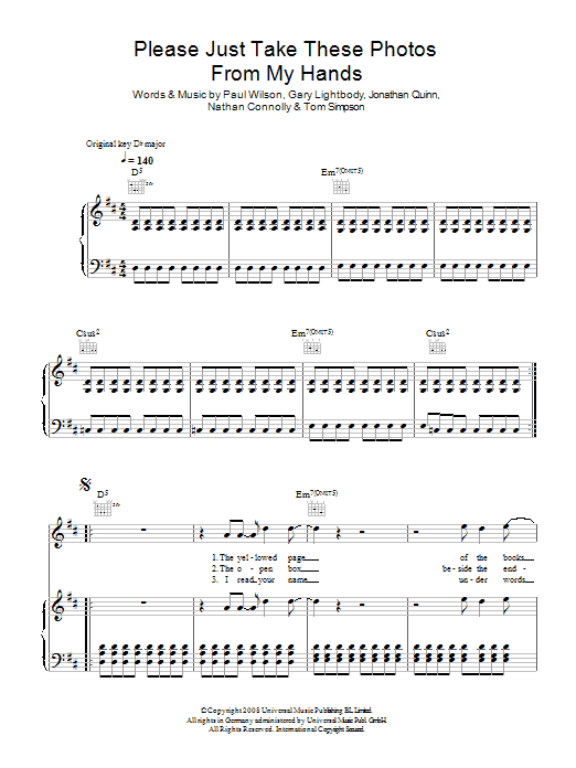 Download or print Snow Patrol Please Just Take These Photos From My Hands sheet music, chords and digital score arranged for Piano, Vocal & Guitar Chords. This Rock score includes 5 page(s).