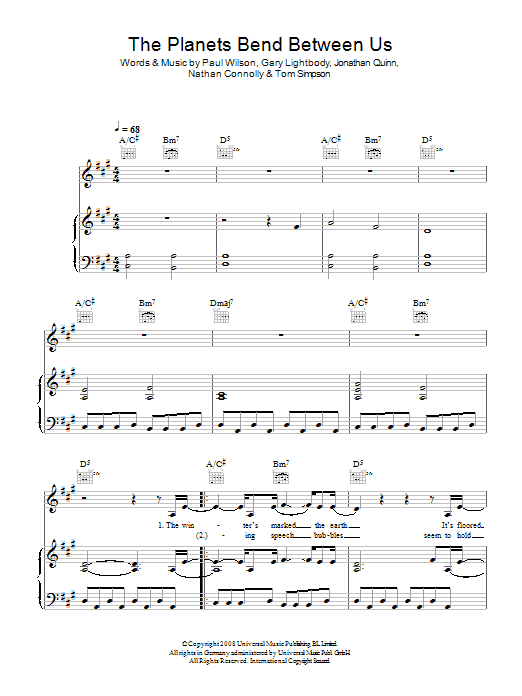Download or print Snow Patrol The Planets Bend Between Us sheet music, chords and digital score arranged for Guitar Tab. This Rock score includes 4 page(s).