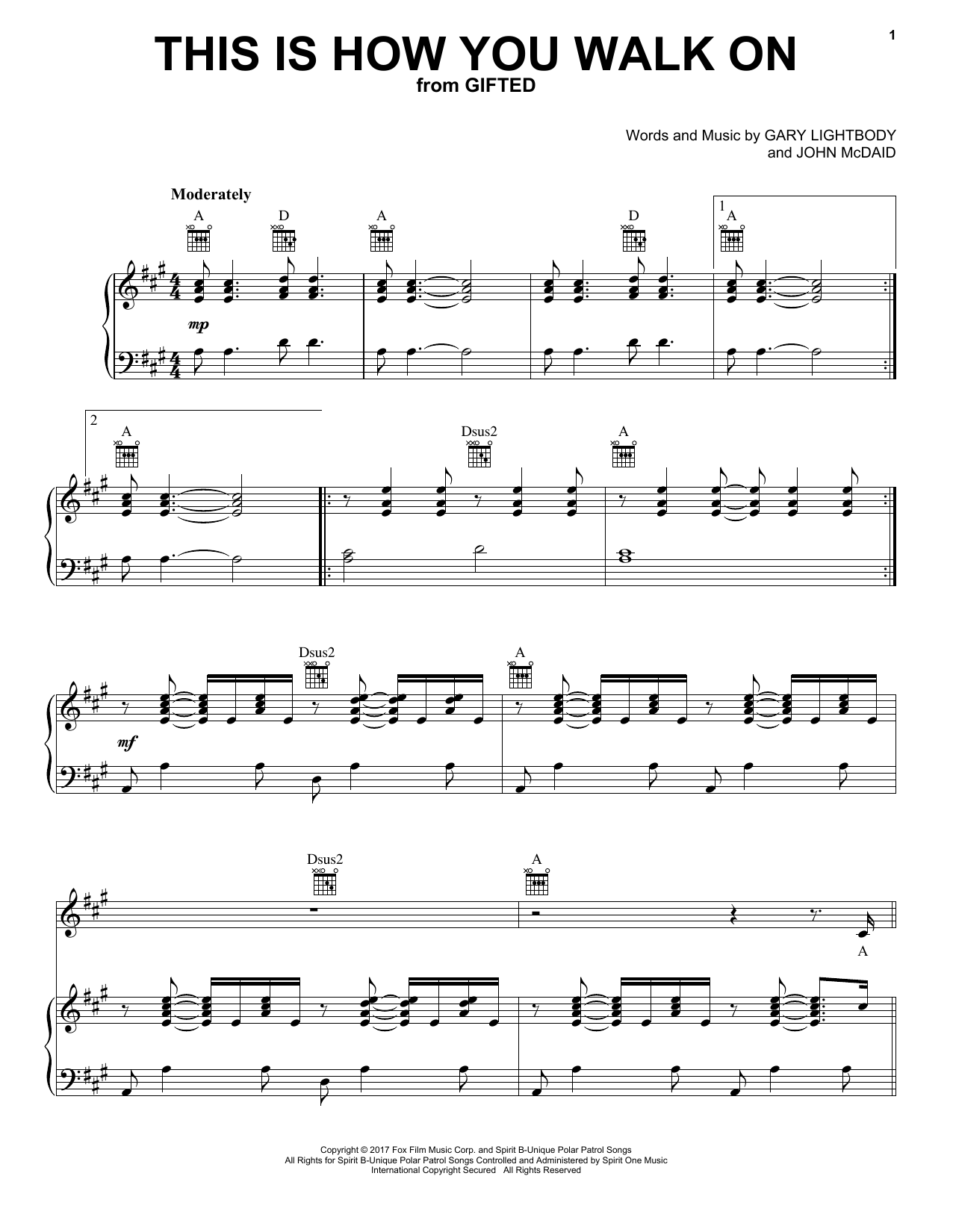 Download or print Gary Lightbody & Johnny McDaid This Is How You Walk On sheet music, chords and digital score arranged for Piano, Vocal & Guitar Chords (Right-Hand Melody). This Film/TV score includes 6 page(s).