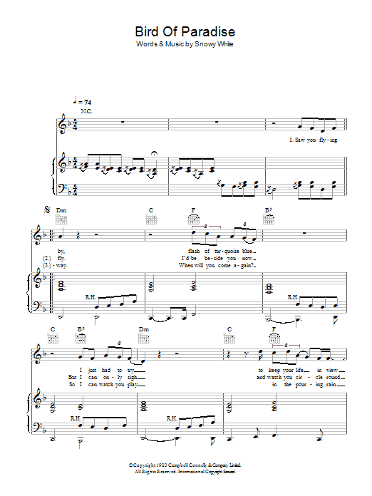 Download or print Snowy White Bird Of Paradise sheet music, chords and digital score arranged for Easy Guitar. This Pop score includes 3 page(s).