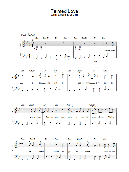 Download or print Soft Cell Tainted Love sheet music, chords and digital score arranged for Piano, Vocal & Guitar Chords (Right-Hand Melody). This Pop score includes 5 page(s).