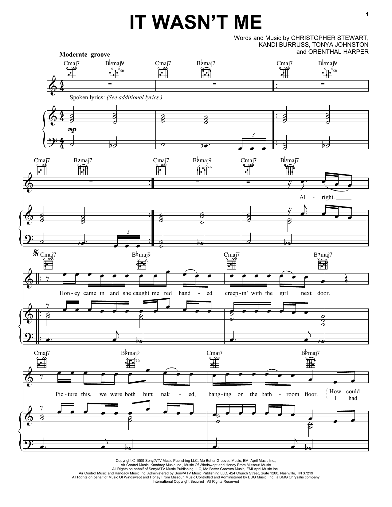 Download or print Sole It Wasn't Me sheet music, chords and digital score arranged for Piano, Vocal & Guitar Chords (Right-Hand Melody). This Pop score includes 7 page(s).