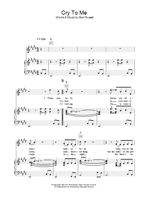 Download or print Solomon Burke Cry To Me sheet music, chords and digital score arranged for Flute Solo. This Soul score includes 2 page(s).