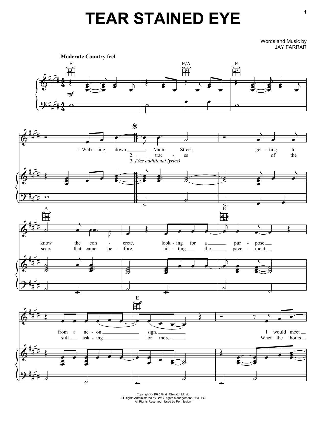 Download or print Son Volt Tear Stained Eye sheet music, chords and digital score arranged for Piano, Vocal & Guitar Chords (Right-Hand Melody). This Country score includes 5 page(s).