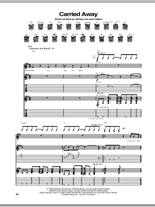Download or print Sonicflood Carried Away sheet music, chords and digital score arranged for Guitar Tab. This Christian score includes 10 page(s).