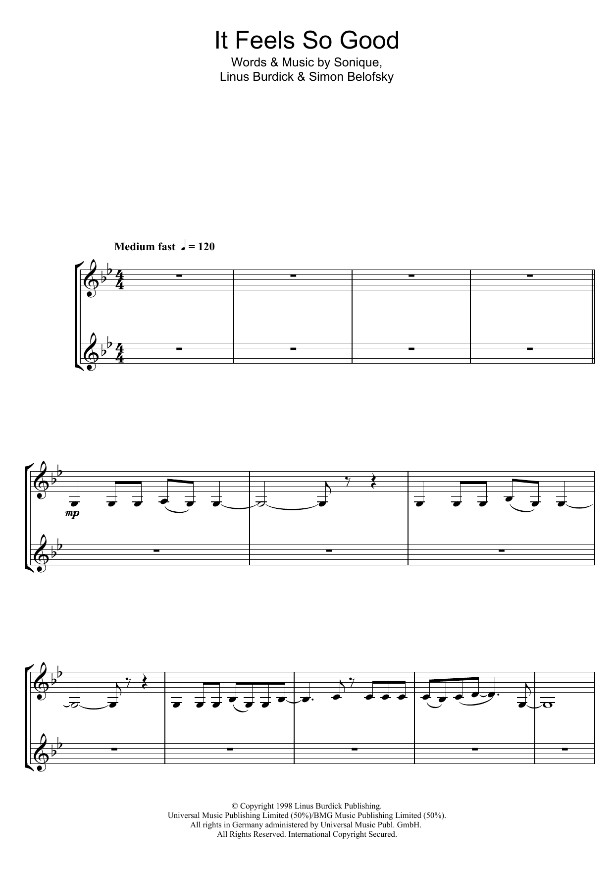 Download or print Sonique It Feels So Good (Clarinet Duet) sheet music, chords and digital score arranged for Clarinet Duet. This Pop score includes 6 page(s).