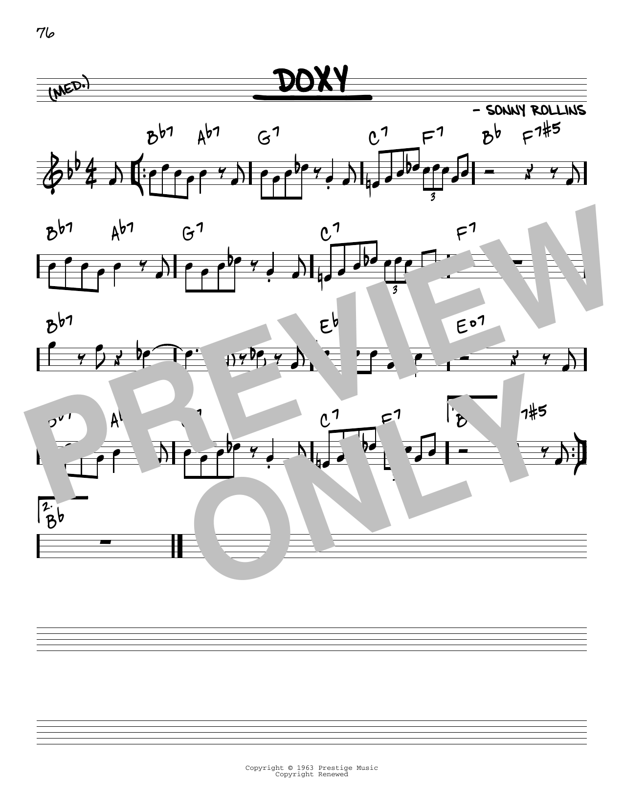 Download or print Sonny Rollins Doxy sheet music, chords and digital score arranged for Piano Solo. This Jazz score includes 4 page(s).