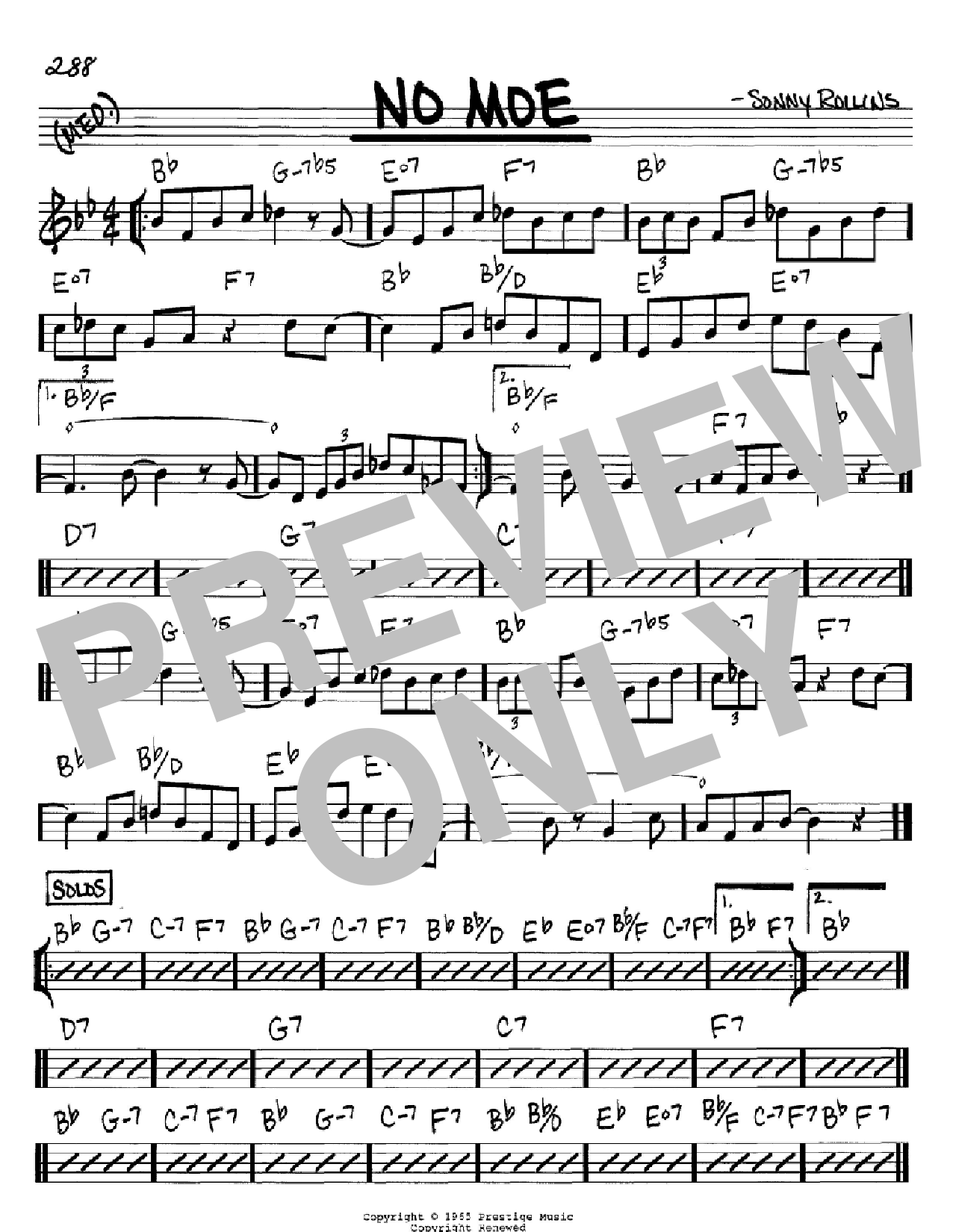 Download or print Sonny Rollins No Moe sheet music, chords and digital score arranged for Real Book – Melody & Chords – C Instruments. This Jazz score includes 1 page(s).