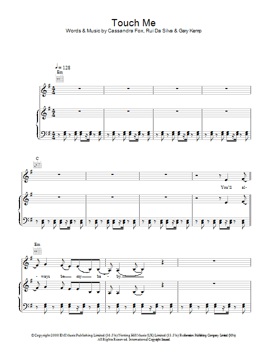 Download or print Rui Da Silva Touch Me sheet music, chords and digital score arranged for Piano & Vocal. This Pop score includes 8 page(s).