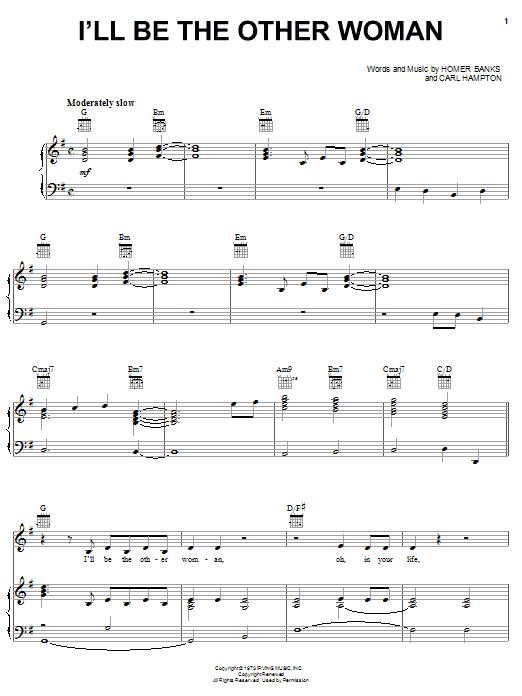 Download or print Soul Children I'll Be The Other Woman sheet music, chords and digital score arranged for Piano, Vocal & Guitar Chords (Right-Hand Melody). This Pop score includes 7 page(s).