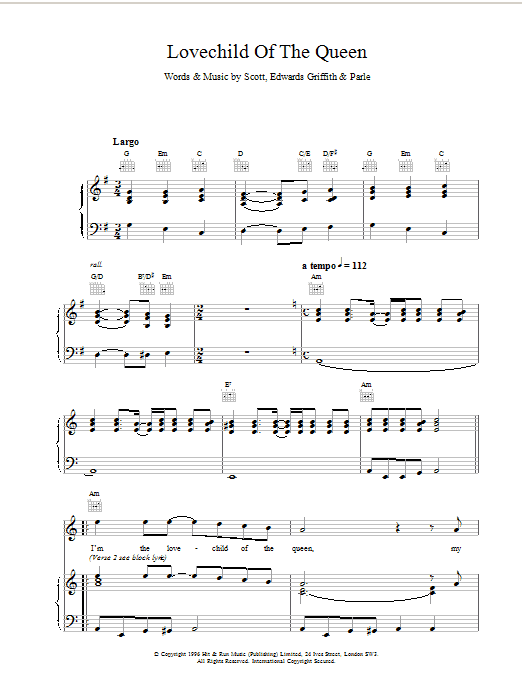 Download or print Space Lovechild Of The Queen sheet music, chords and digital score arranged for Piano, Vocal & Guitar Chords. This Alternative score includes 5 page(s).