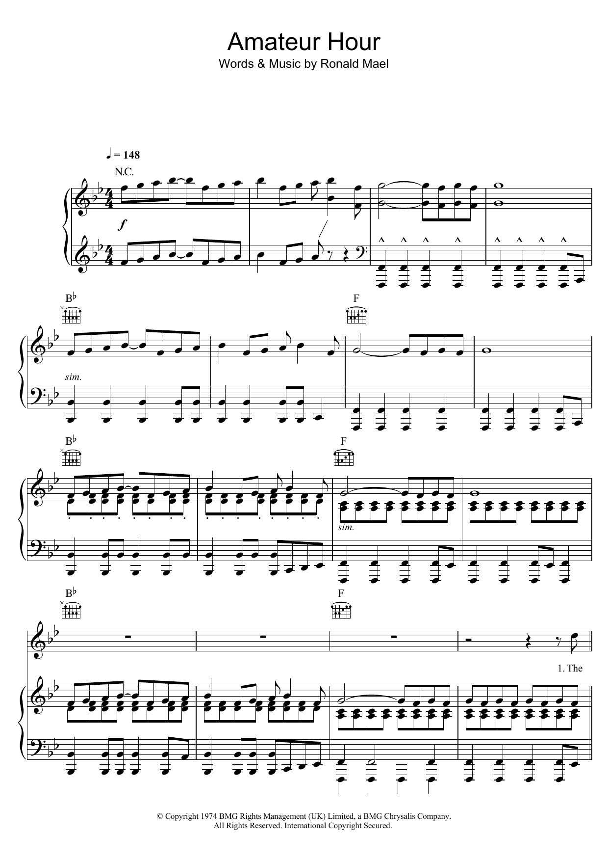 Download or print Sparks Amateur Hour sheet music, chords and digital score arranged for Piano, Vocal & Guitar Chords. This Rock score includes 6 page(s).
