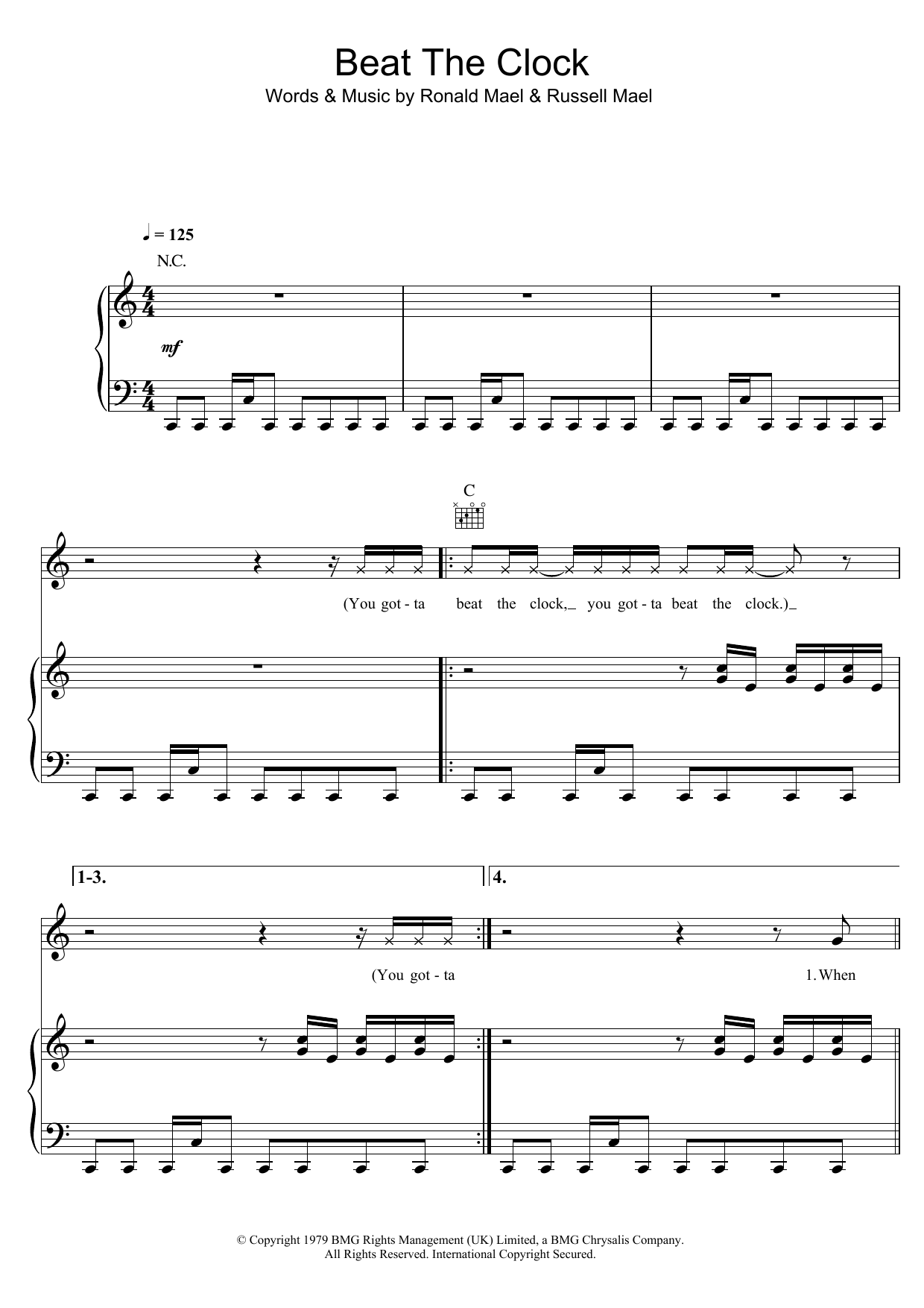 Download or print Sparks Beat The Clock sheet music, chords and digital score arranged for Piano, Vocal & Guitar Chords. This Rock score includes 12 page(s).