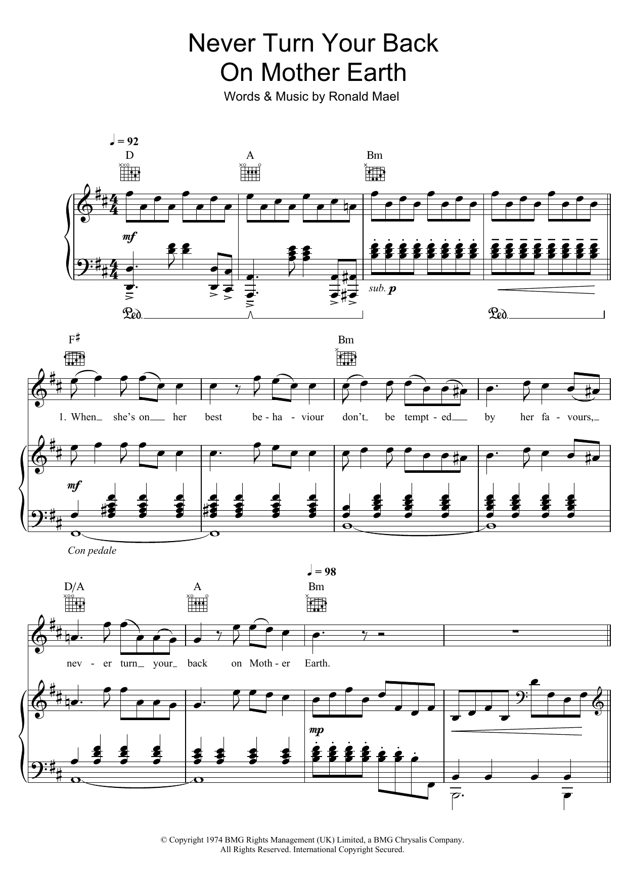 Quick facts Never Turn Your Back On Mother Earth about digital sheet music
