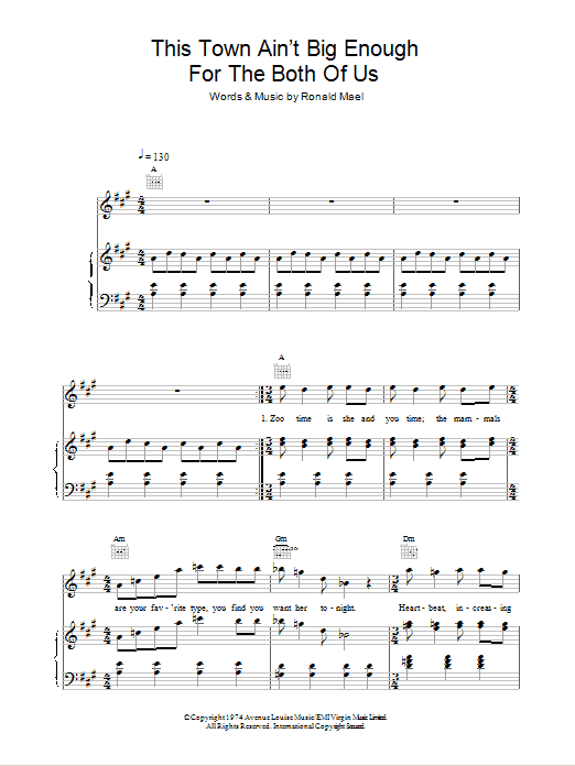 Download or print Sparks This Town Ain't Big Enough For Both Of Us sheet music, chords and digital score arranged for Guitar Chords/Lyrics. This Rock score includes 3 page(s).