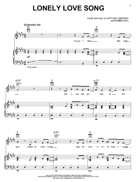 Quick facts Lonely Love Song about digital sheet music