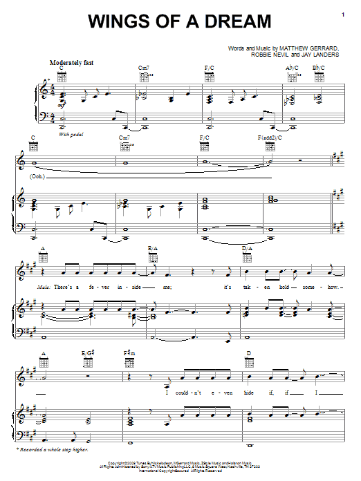 Download or print Spectacular! (Movie) Wings Of A Dream sheet music, chords and digital score arranged for Piano, Vocal & Guitar Chords (Right-Hand Melody). This Film/TV score includes 10 page(s).
