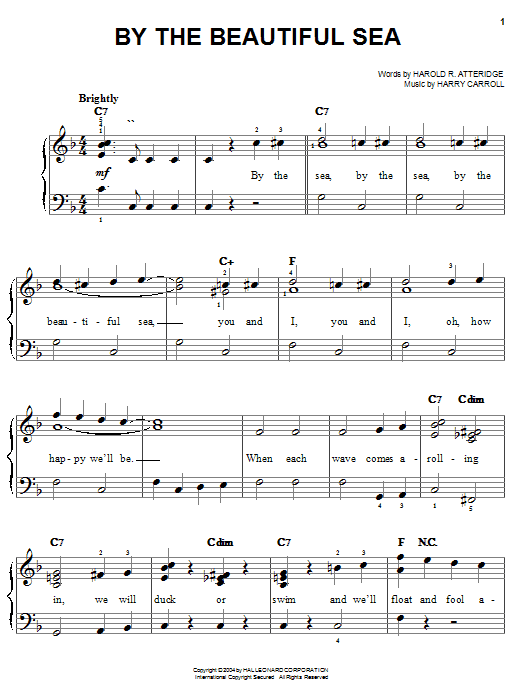 Download or print Spike Jones By The Beautiful Sea sheet music, chords and digital score arranged for Easy Piano. This Country score includes 2 page(s).
