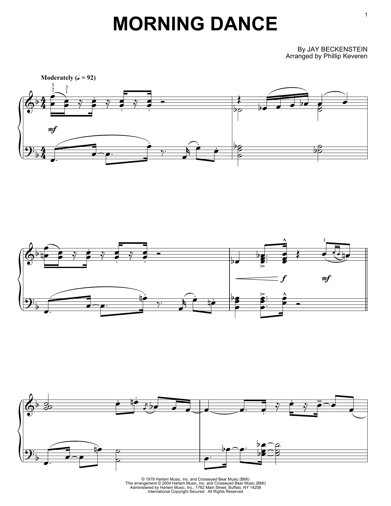 Quick facts Morning Dance (arr. Phillip Keveren) about digital sheet music