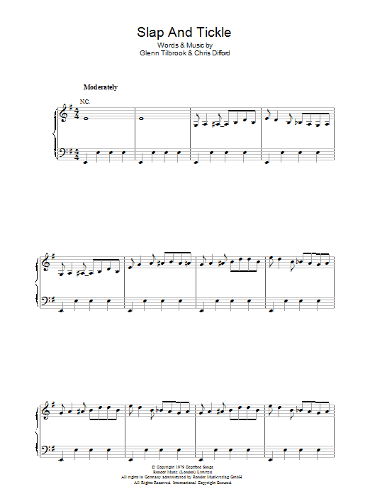 Download or print Squeeze Slap And Tickle sheet music, chords and digital score arranged for Piano, Vocal & Guitar Chords. This Pop score includes 7 page(s).