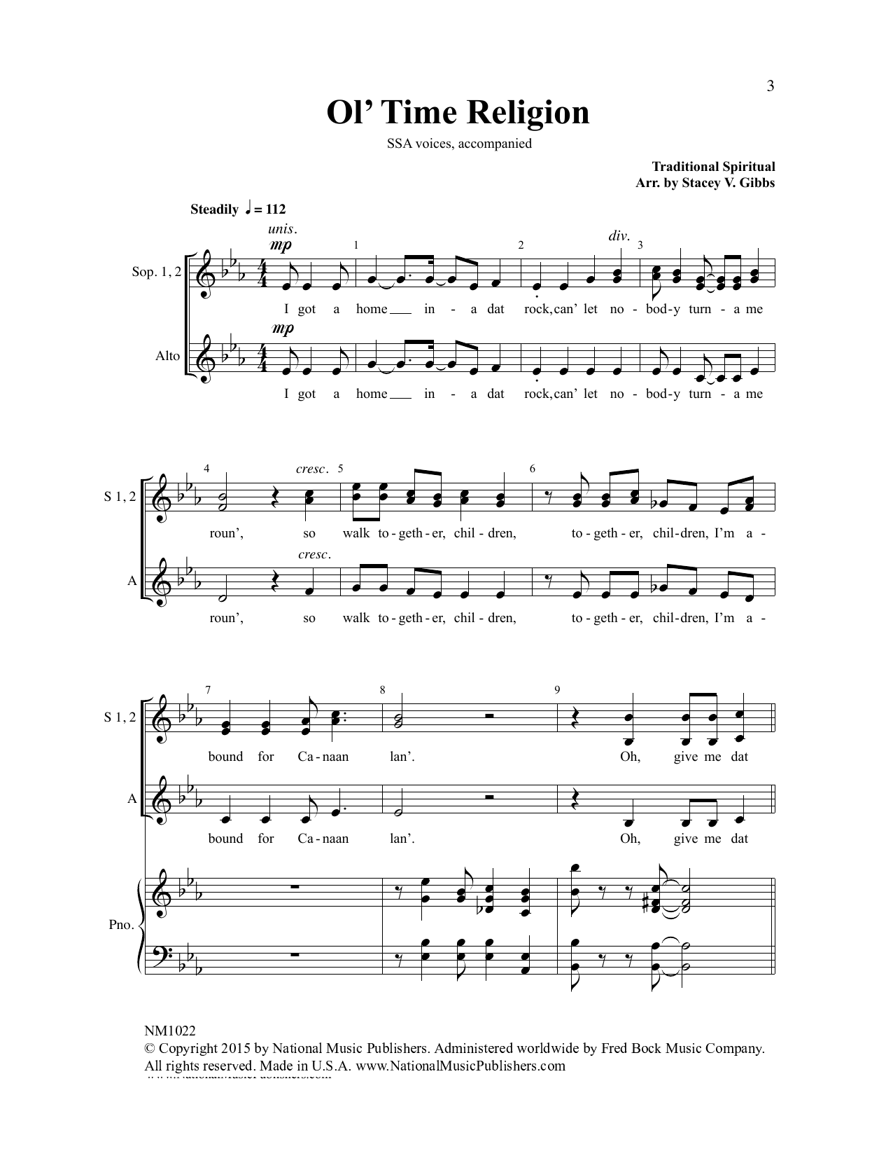 Download or print Stacey V. Gibbs Ol' Time Religion sheet music, chords and digital score arranged for SSA Choir. This Concert score includes 9 page(s).