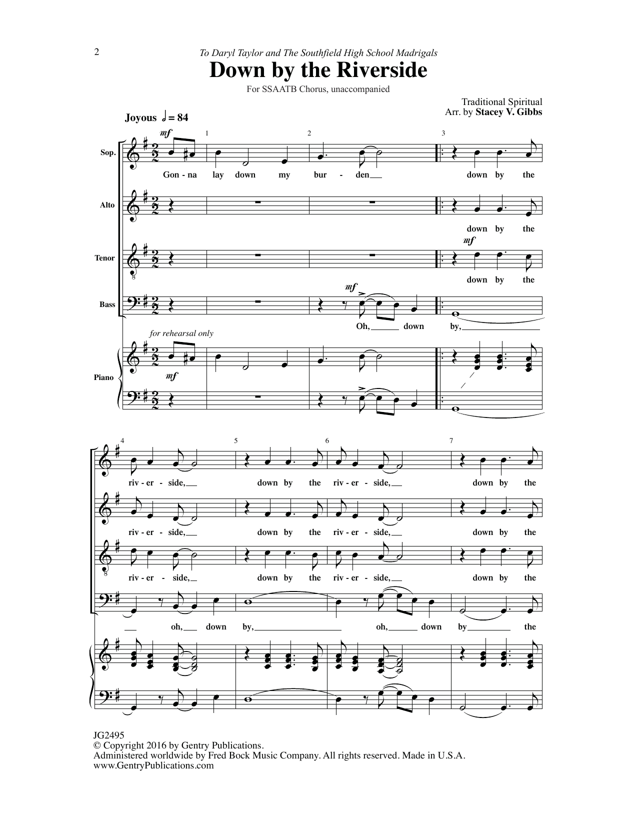 Download or print Stacy V. Gibbs Down by the Riverside sheet music, chords and digital score arranged for Choir. This A Cappella score includes 11 page(s).