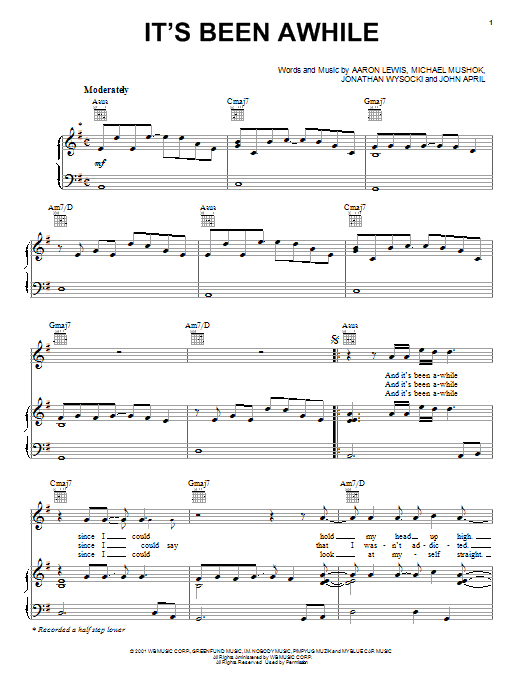 Download or print Staind It's Been Awhile sheet music, chords and digital score arranged for Piano, Vocal & Guitar Chords (Right-Hand Melody). This Pop score includes 6 page(s).