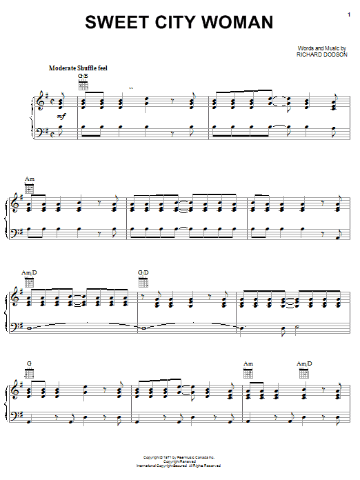 Download or print Stampeders Sweet City Woman sheet music, chords and digital score arranged for Lead Sheet / Fake Book. This Pop score includes 2 page(s).