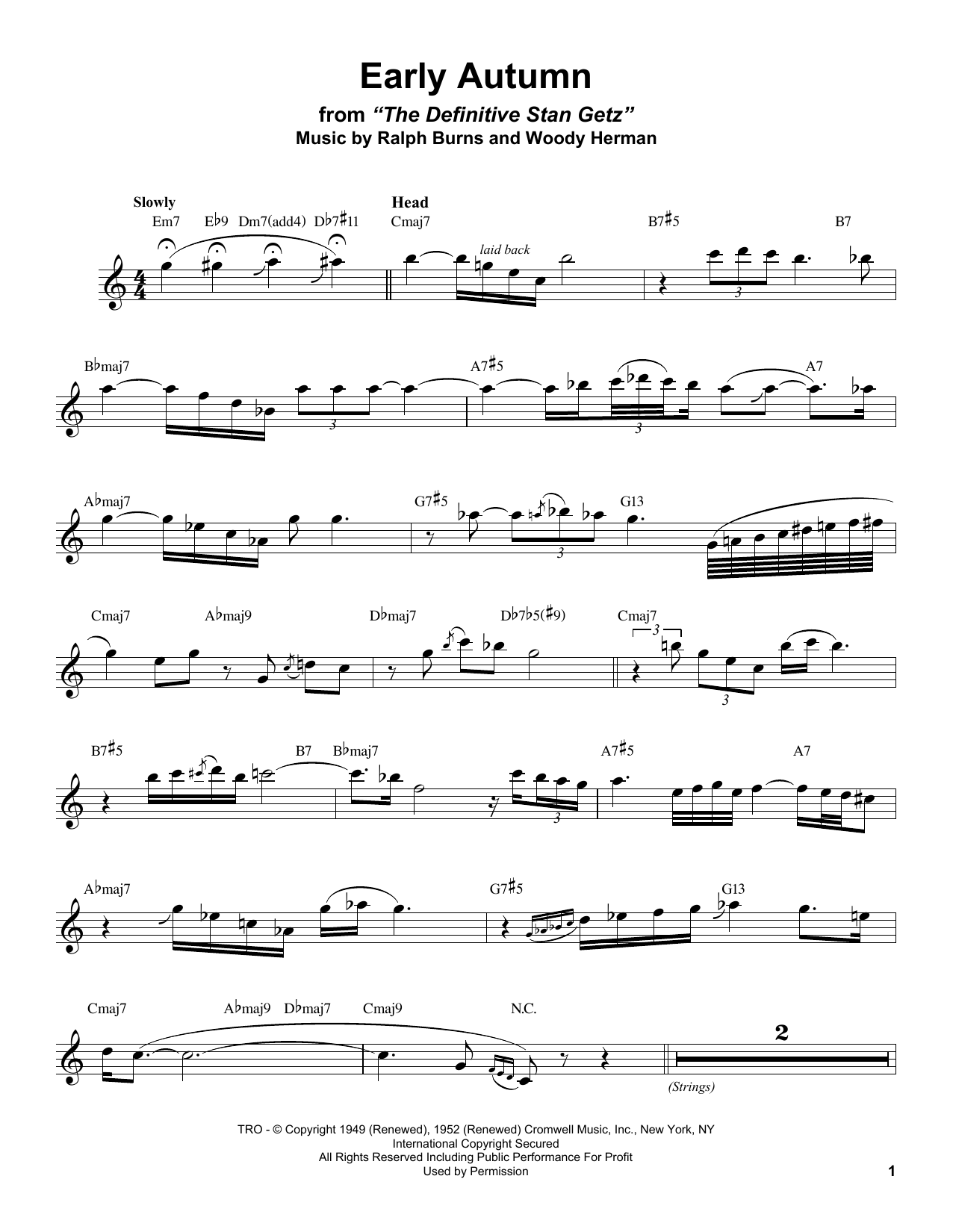 Download or print Stan Getz Early Autumn sheet music, chords and digital score arranged for Alto Sax Transcription. This Jazz score includes 4 page(s).