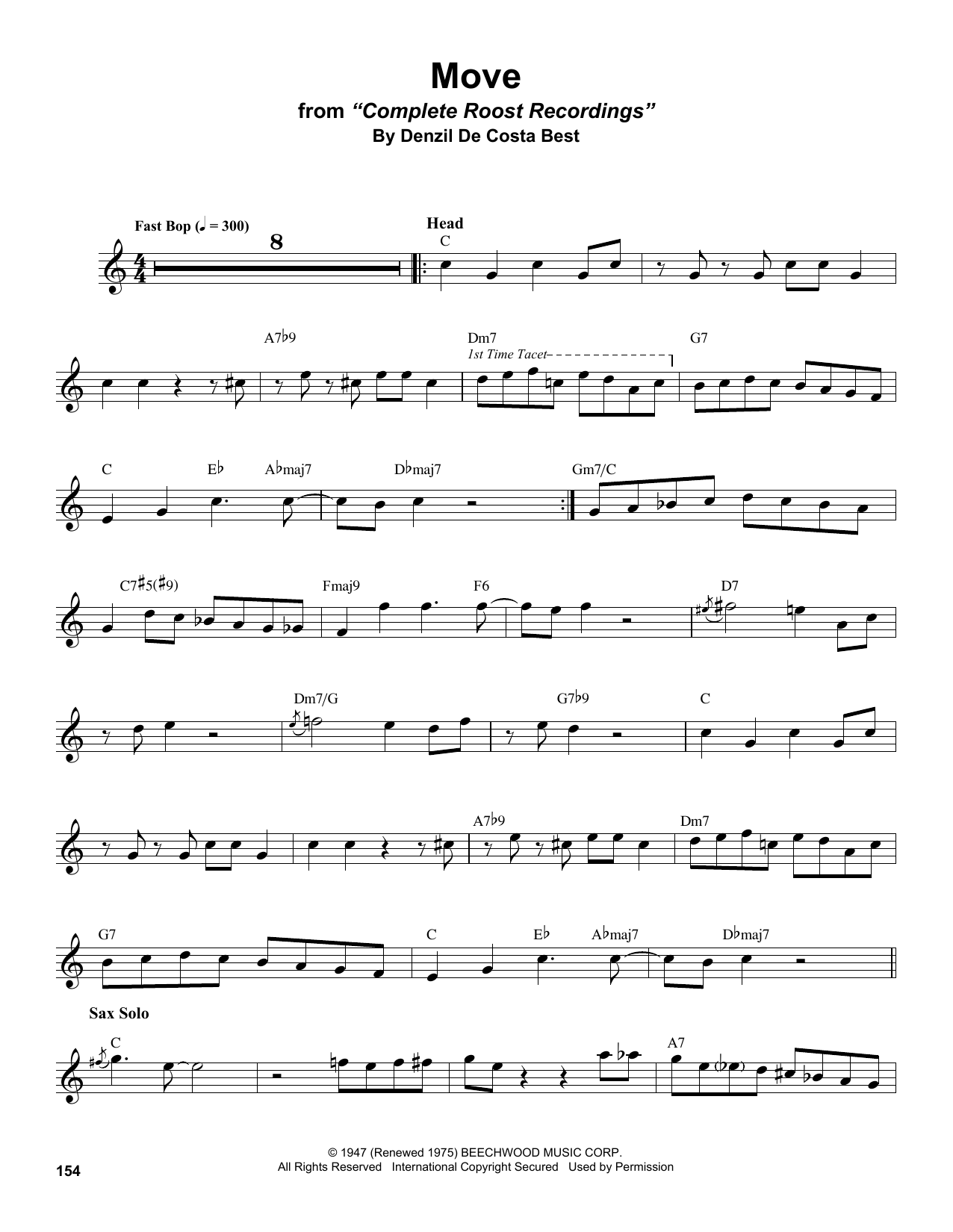 Download or print Stan Getz Move sheet music, chords and digital score arranged for Alto Sax Transcription. This Jazz score includes 7 page(s).
