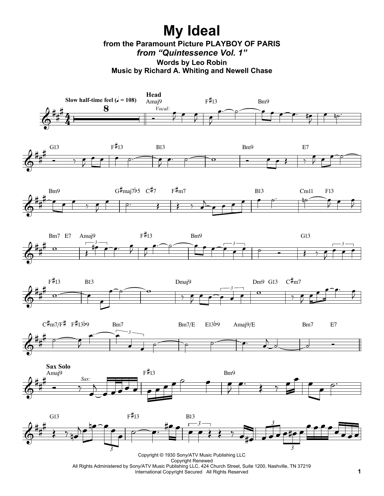 Download or print Stan Getz My Ideal (from Playboy of Paris) sheet music, chords and digital score arranged for Alto Sax Transcription. This Jazz score includes 3 page(s).