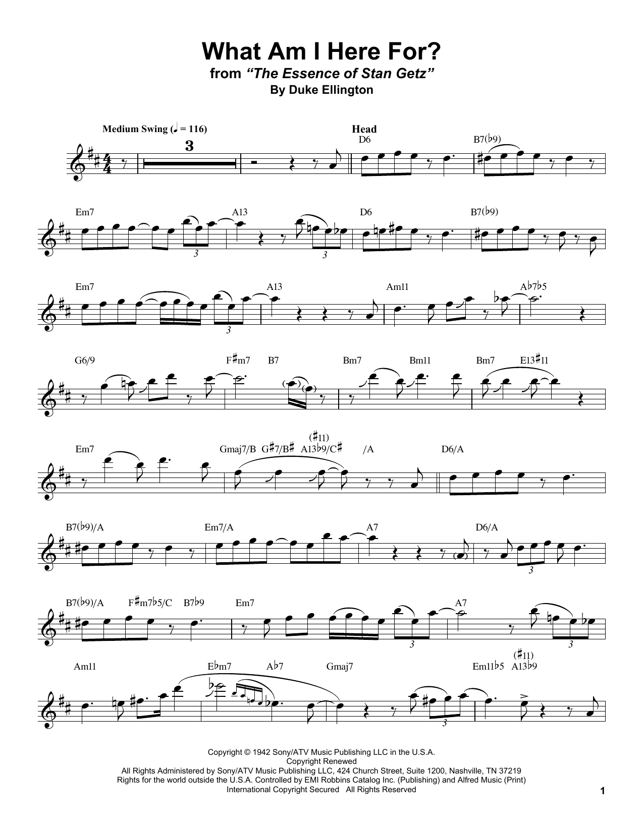 Download or print Stan Getz What Am I Here For? sheet music, chords and digital score arranged for Alto Sax Transcription. This Jazz score includes 3 page(s).