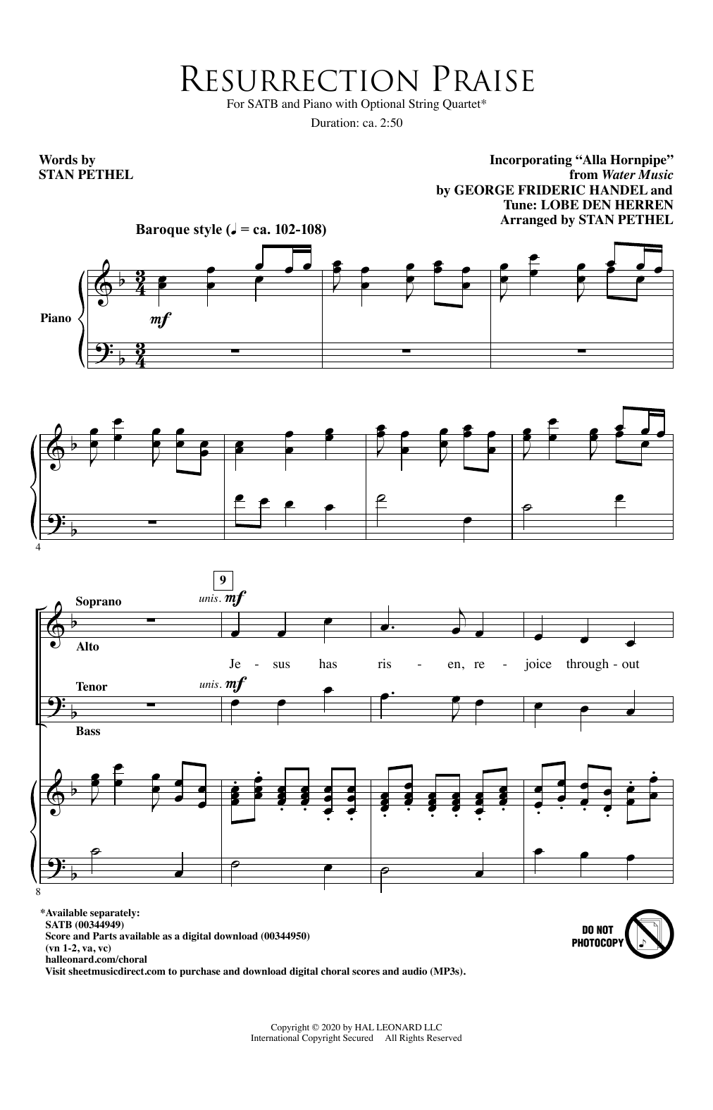 Download or print Stan Pethel Resurrection Praise sheet music, chords and digital score arranged for SATB Choir. This Easter score includes 10 page(s).
