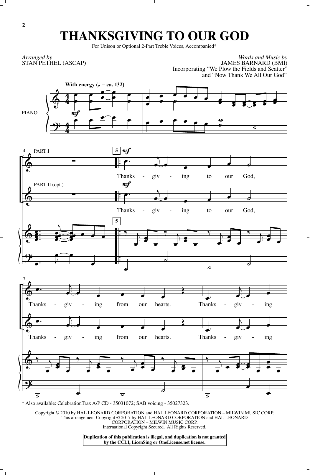Download or print Stan Pethel Thanksgiving To Our God sheet music, chords and digital score arranged for SAB Choir. This Concert score includes 6 page(s).