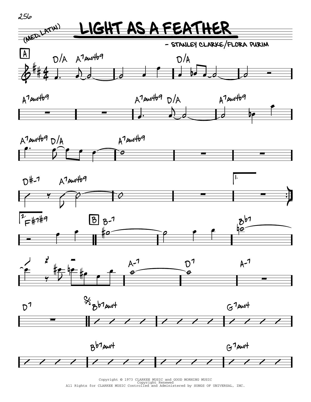 Download or print Stanley Clarke Light As A Feather sheet music, chords and digital score arranged for Real Book – Melody & Chords. This Jazz score includes 2 page(s).