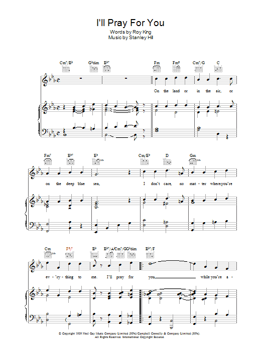 Download or print Stanley Hill I'll Pray For You sheet music, chords and digital score arranged for Piano, Vocal & Guitar Chords. This Pop score includes 4 page(s).