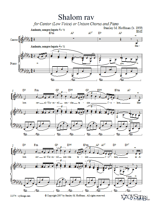 Download or print Stanley Hoffman Shalom Rav sheet music, chords and digital score arranged for Unison Choir. This Traditional score includes 5 page(s).