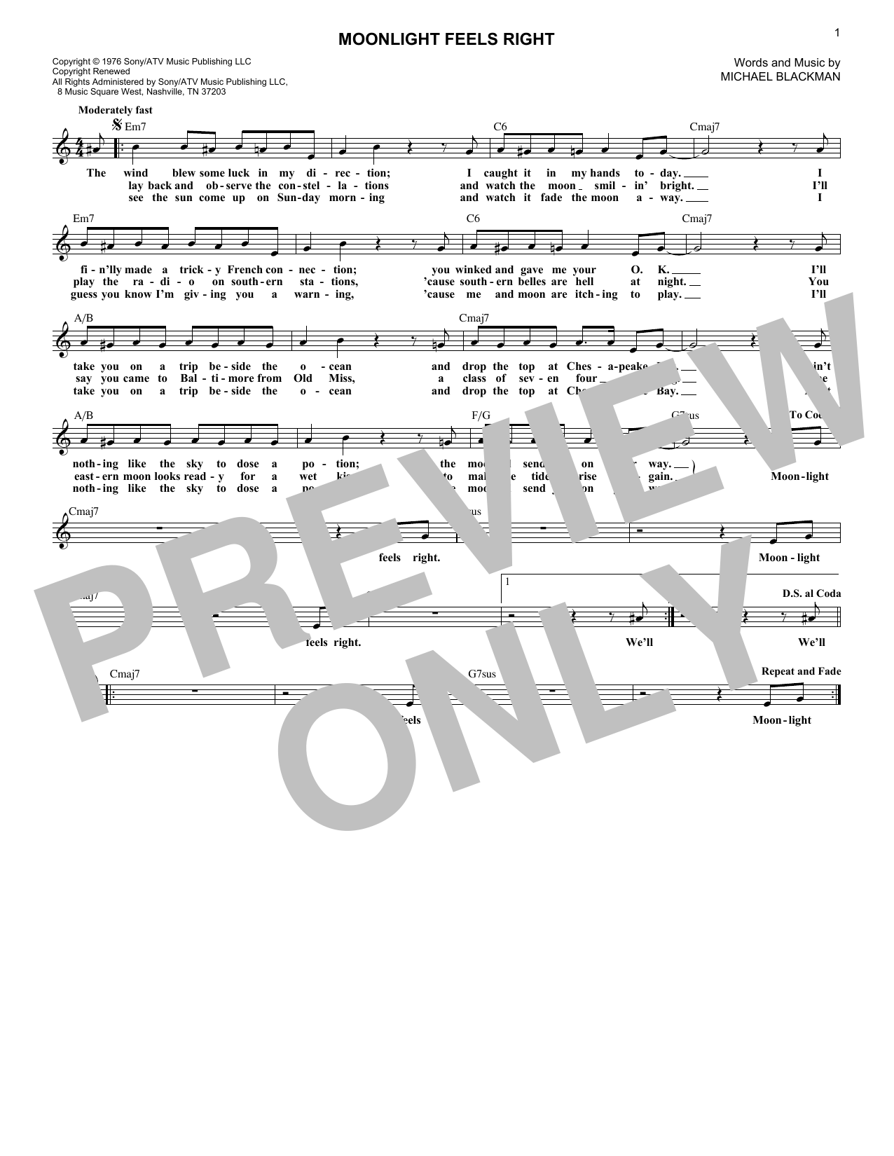 Download or print Starbuck Moonlight Feels Right sheet music, chords and digital score arranged for Lead Sheet / Fake Book. This Pop score includes 1 page(s).