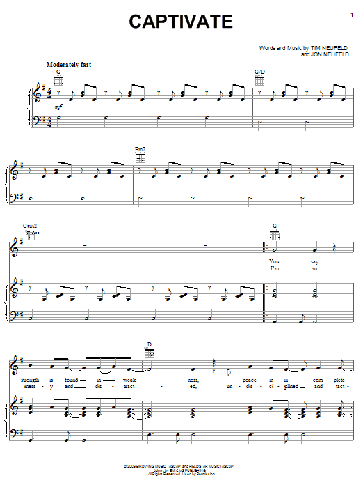 Download or print Starfield Captivate sheet music, chords and digital score arranged for Piano, Vocal & Guitar Chords (Right-Hand Melody). This Christian score includes 7 page(s).