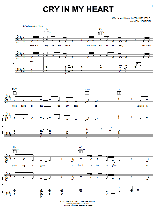 Download or print Starfield Cry In My Heart sheet music, chords and digital score arranged for Piano, Vocal & Guitar Chords (Right-Hand Melody). This Christian score includes 6 page(s).