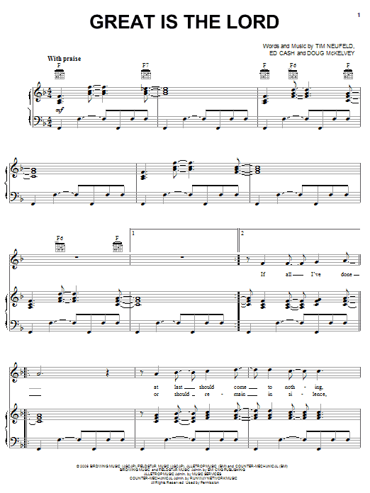 Download or print Starfield Great Is The Lord sheet music, chords and digital score arranged for Piano, Vocal & Guitar Chords (Right-Hand Melody). This Christian score includes 7 page(s).