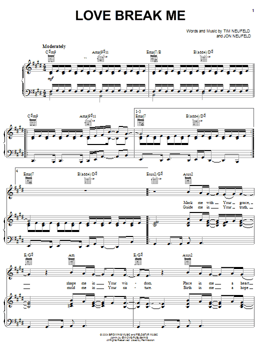Download or print Starfield Love Break Me sheet music, chords and digital score arranged for Piano, Vocal & Guitar Chords (Right-Hand Melody). This Christian score includes 9 page(s).
